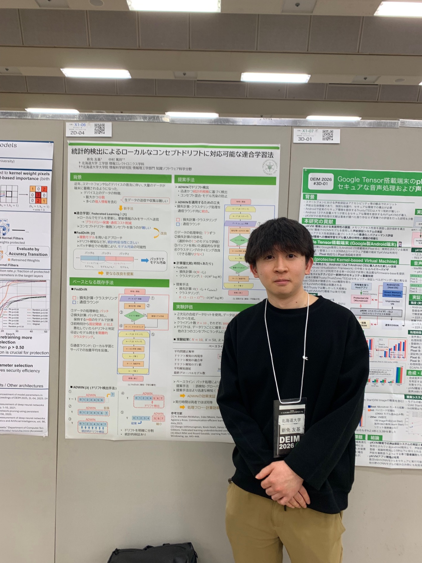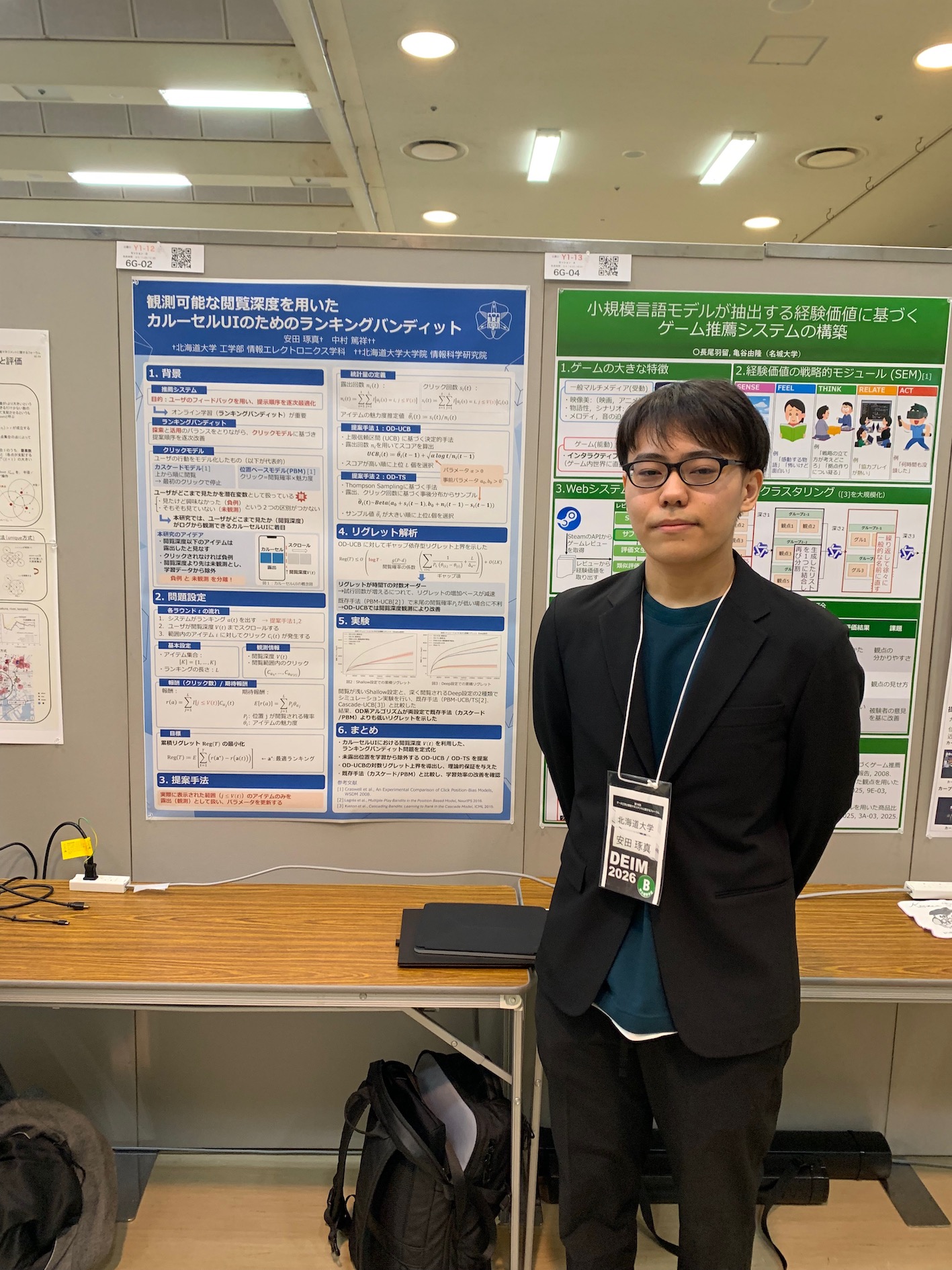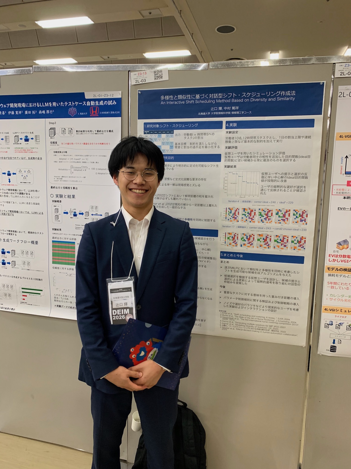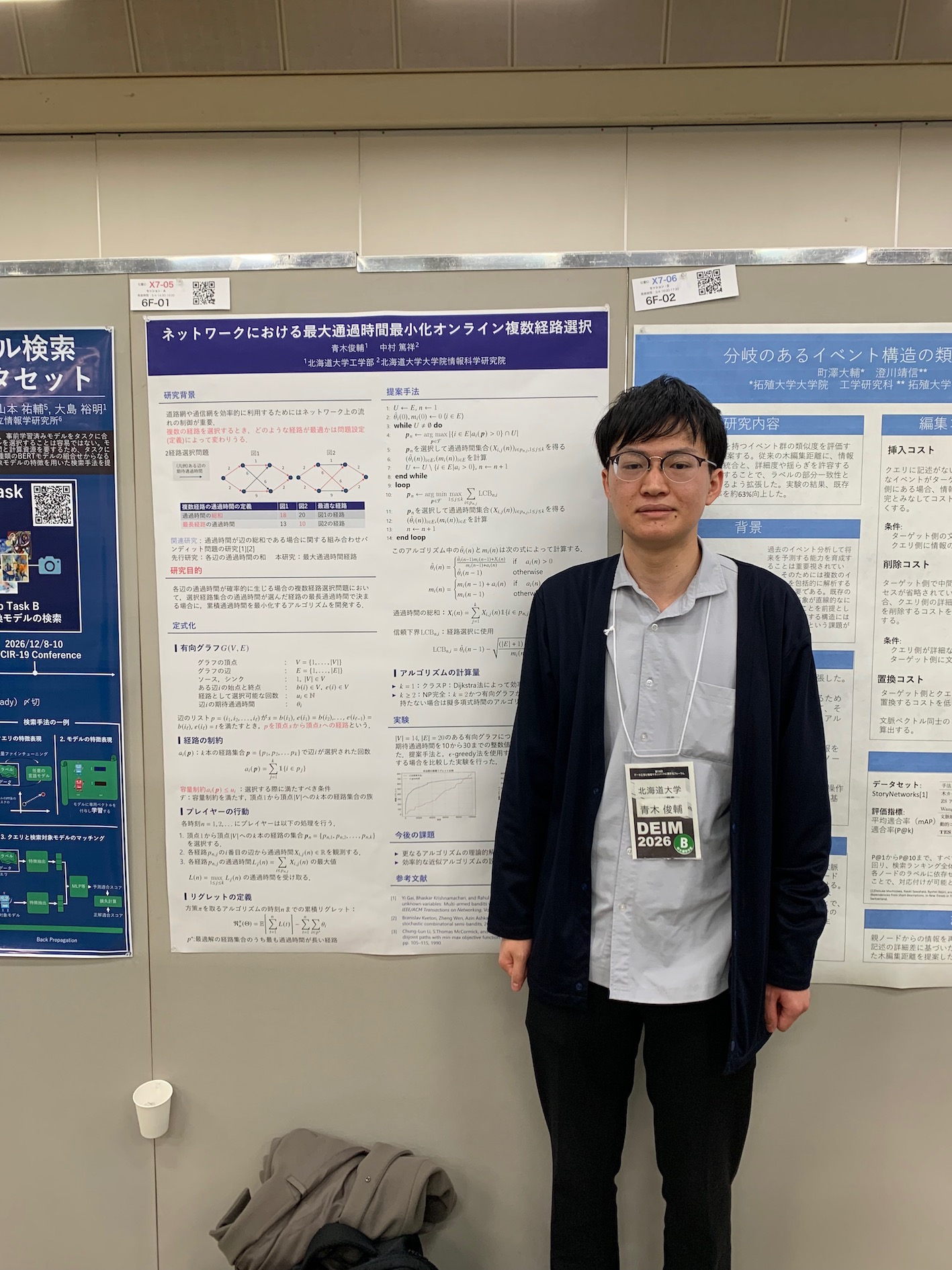 神戸国際会議場・展示場(ポートアイランド)で3月4-5日に行われたDEIM2026のインタラクティブセッションで、アルゴリズム研究室の辻口輝さん(M2)、青木俊輔さん(B4)、新免友基さん(B4)、安田琢真さん(B4)の4名がポスター発表しました。